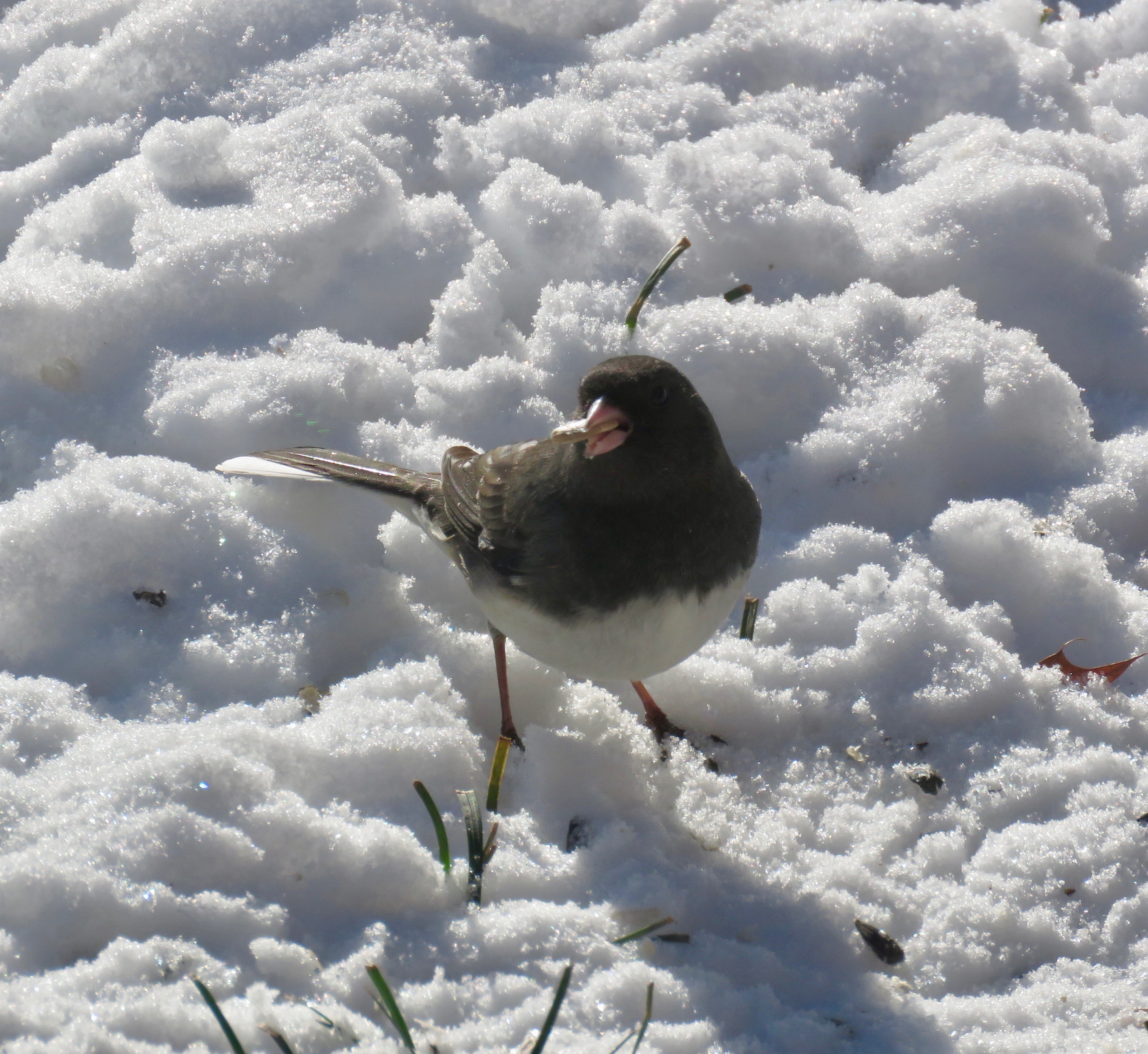 Dark-eyed Junco. Astounding I took that picture 3 days ago, and we ate lunch outside today.