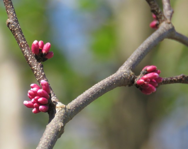 Possibly they were out earlier and I missed them, but this morning was my first look at Redbud buds at Pony Pasture. They’re a beautiful, bright, brief-tenured harbinger of Spring – they’ve been a favorite for decades. I used to hike and camp on the Appalachian Trail every Spring with Nicky and Ivory (my first dogs) and Redbuds continue to remind me of the inevitability and incipience of the new season. Take a look – they’ll be developing in the coming weeks: