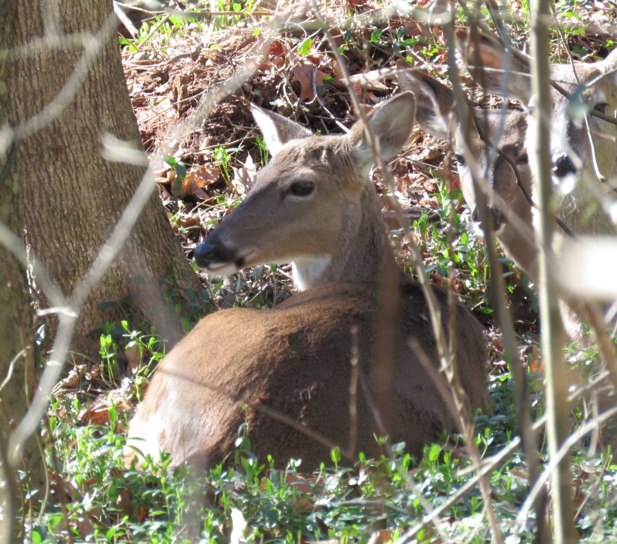 A deer in the center, two more on the right
