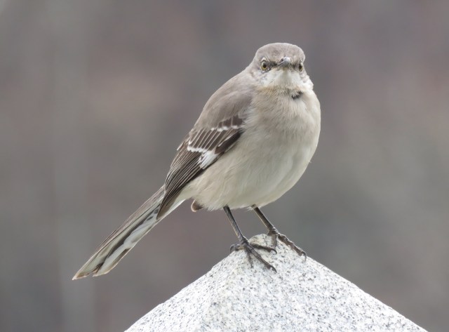 I did get a nice mockingbird Wednesday at Hollywood Cemetery. When they pose, as they occasionally do, they photograph well. I took this picture out of the driver’s side window of my car, the perfect urban blind: