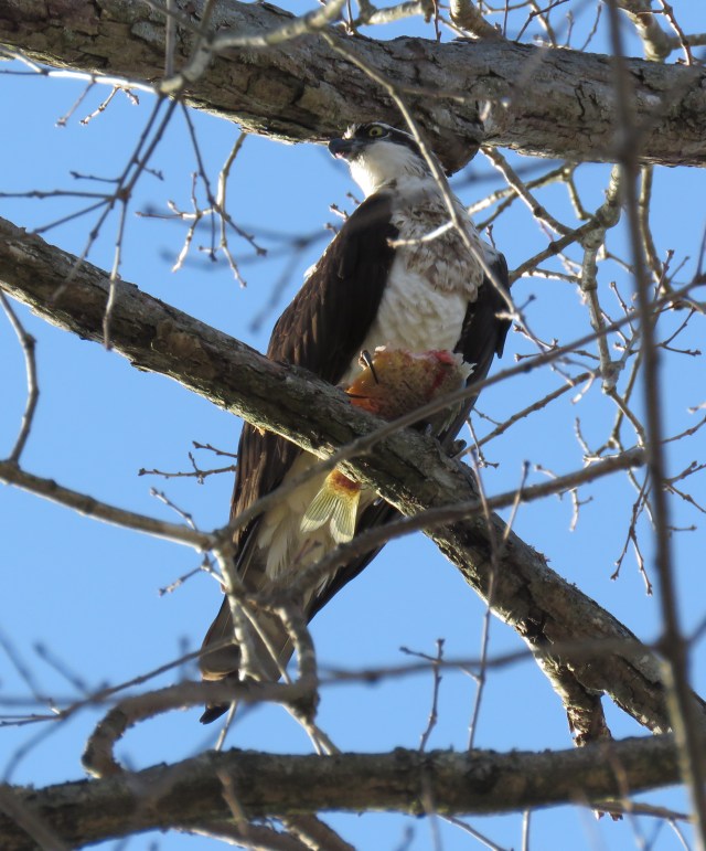 Sam left a couple of hours later and I walked back to the car and the same bird was sitting in the same tree – this time with a fresh-caught fish: