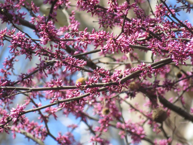 These redbuds were gleaming about three minutes walk before the trout lilies (which were about three minutes walk before the deer):
