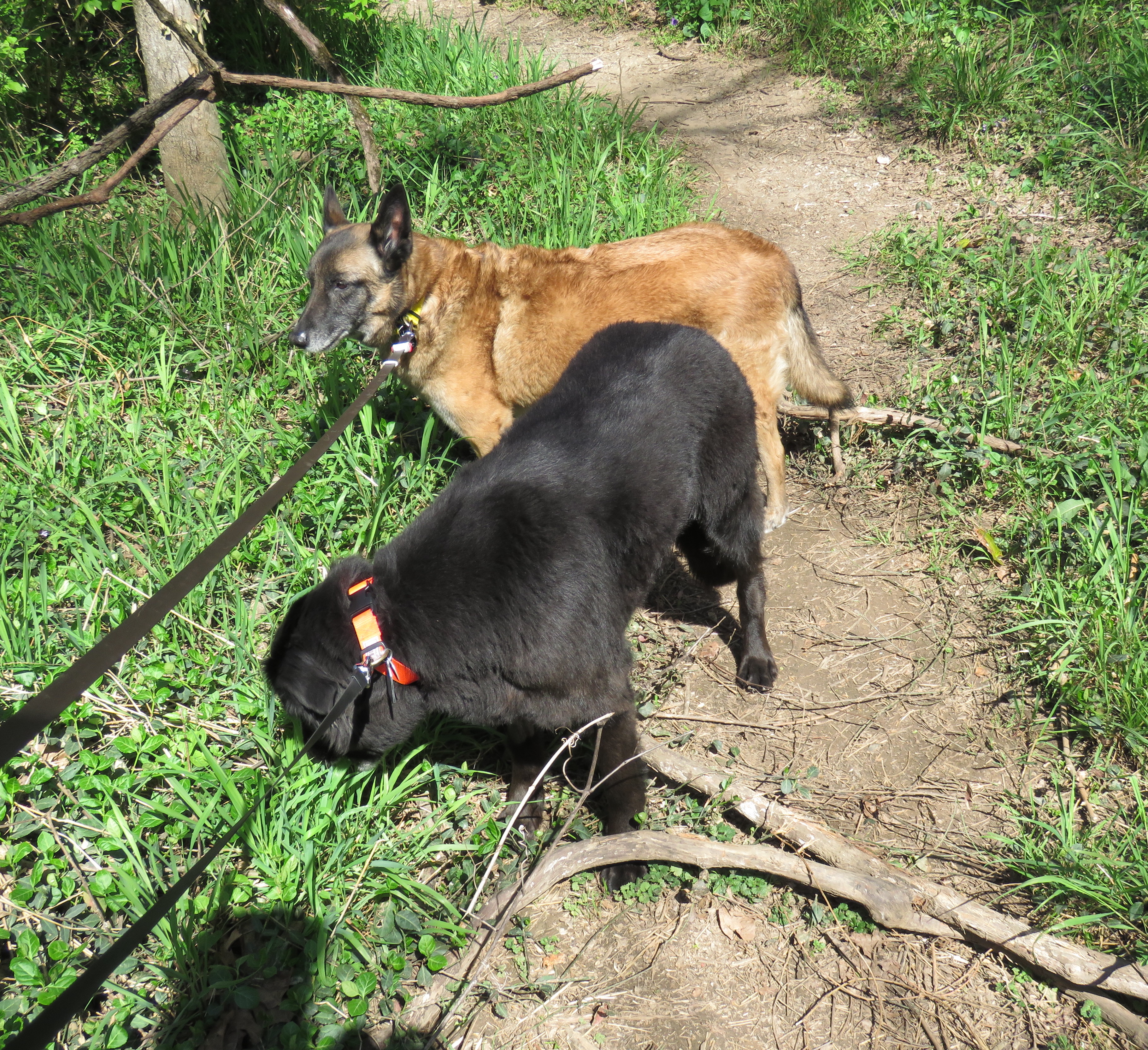 Mackey and Turner enjoying the first greens of 2018. Who knew dogs were grazers?