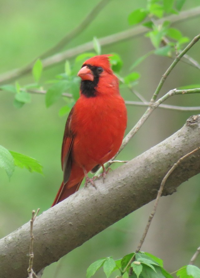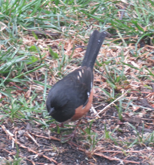 This cardinal wasn’t from my yard – this was from Pony Pasture at 11:30 this morning – but there are many like this (and females) on my feeders every day. And I guarantee this guy provides a strong thread of the sound tapestry that is “the opposite of complaining”: