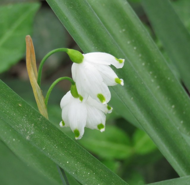 I got a “new” (to me) flower at the river this morning. I’d seen it before but misidentified it. Through the magic of the internet I emailed the picture to Ev and she’d identified it before I even got home. This is a Summer Snowflake (Leucojum aestivum):