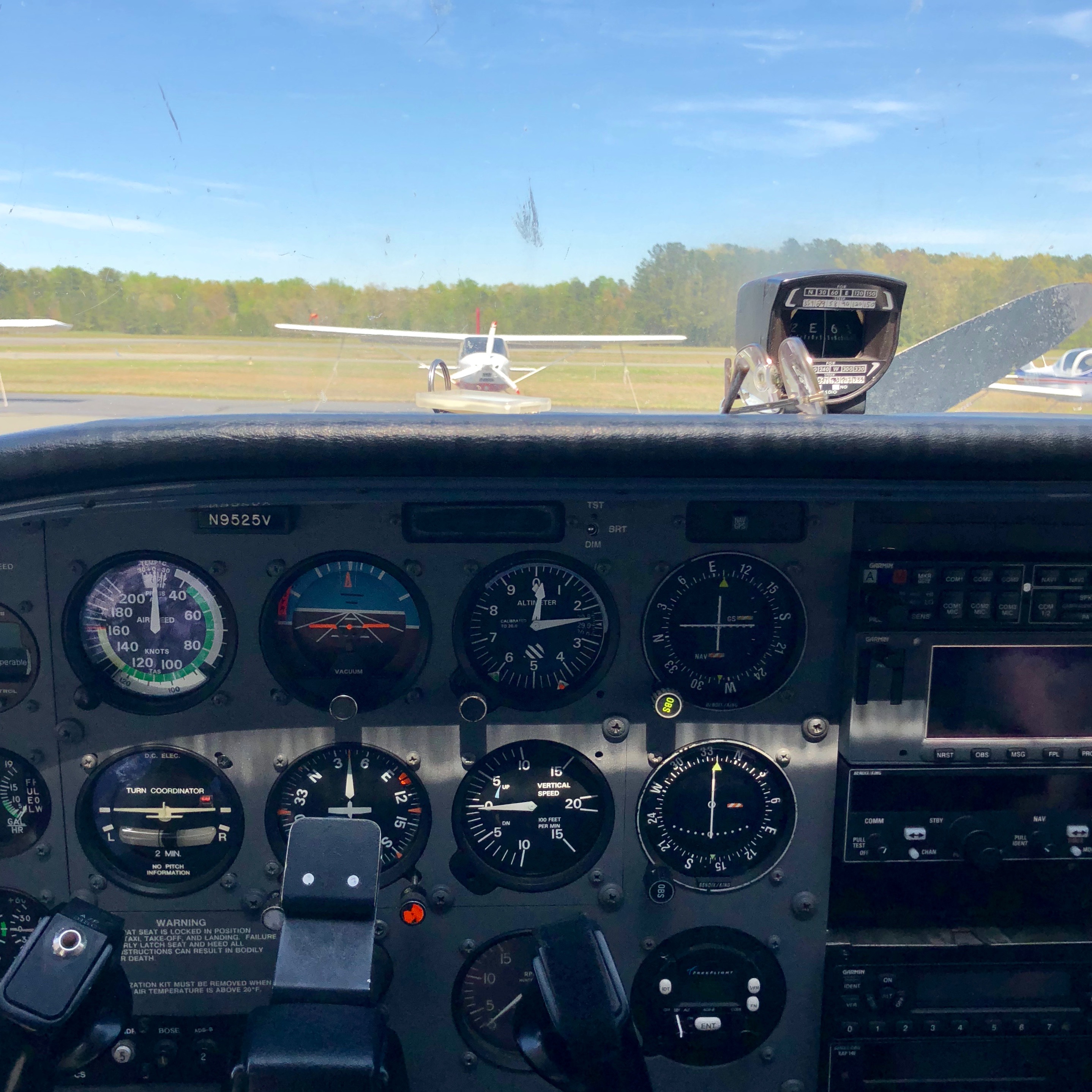 This is the view from the driver’s seat – note stopped propeller, and LOTS of pollen: