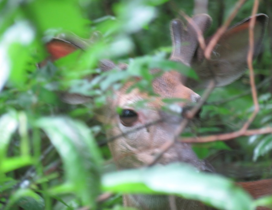 It’s easy to see his right eye. Look closely; his left antler is obvious too.
