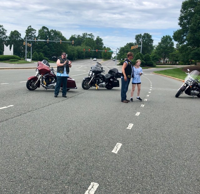 I was particularly drawn to that one because I immediately thought “you could leave out ‘autism is a spectrum disorder, and.’” The sign would then read “each individual is unique, talented, and wonderful in their own way.” I thought that most when I looked at the dozens and dozens of huge, bearded, tattooed, leather wearing, Harley driving motorcyclists helping us out wherever we turned. Here’s just a handful of them. I think there were fifty or more in total: