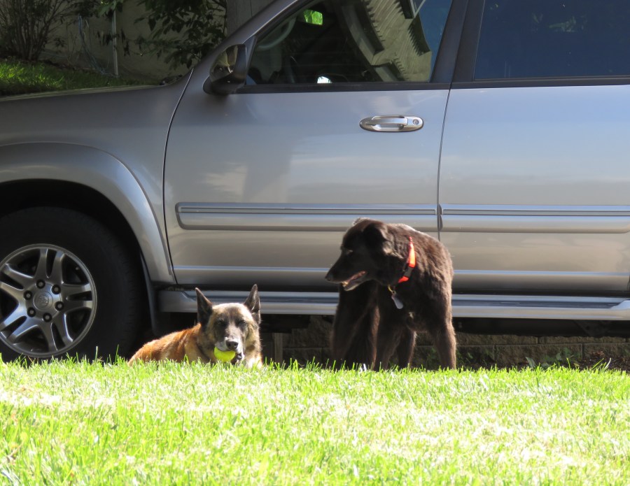 Mackey and Turner this morning in Blacksburg. Turner falls asleep with a ball in his mouth – not even kidding.