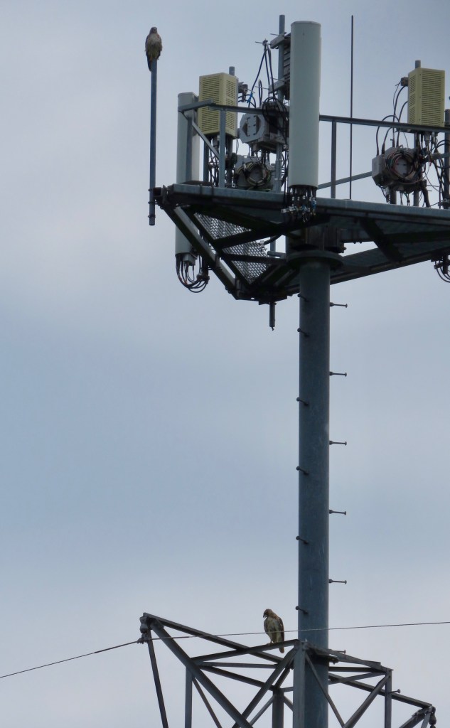 My week was a bit busier than usual and my hand is still in a splint so I can’t decompress the way I normally do (swimming and cycling). So Friday I was under a bit more stress than I’m accustomed to and I was driving near Freeman HS when I saw two Red-tails on a cell phone tower. I immediately pulled in the parking lot and took a not-great picture. But it always calms me down. Double Red-tails are not easy to get: