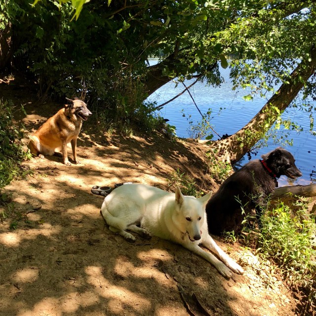 I’ll start at the river, the mighty James River, at Pony Pasture, this morning, with dogs – what better place? And with what better company?