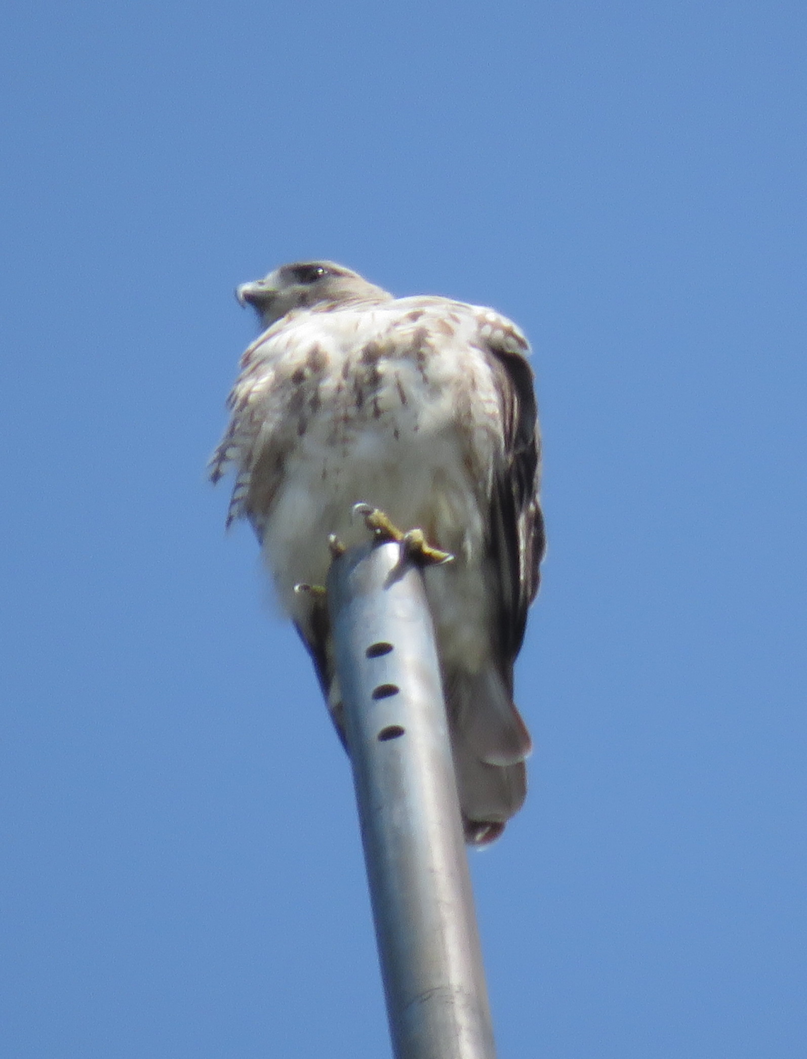 Fat and I suspect happy (well-fed, anyway) female Red-tailed hawk near the Westbury Apothecary