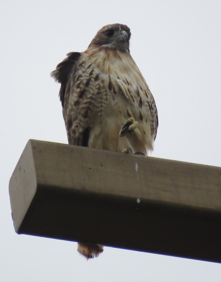 Female Red-tail perched on the cross at Discovery United Methodist Church