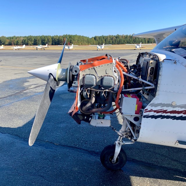 I’d planned to fly Tuesday but the plane was having work done and it wasn’t ready. I was bummed that I couldn’t fly but I got to see the engine of a Cessna for the first time – incredible. I took my first flight over a year ago, I’ve flown nearly seventy hours, and never seen an engine! I got to spend a lot of time looking and learning Tuesday though. Here it is with the cover off. They ran it with the cover off too; it is really loud. When you’re flying, you always have your headset on so you don’t even hear it. Quite loud: