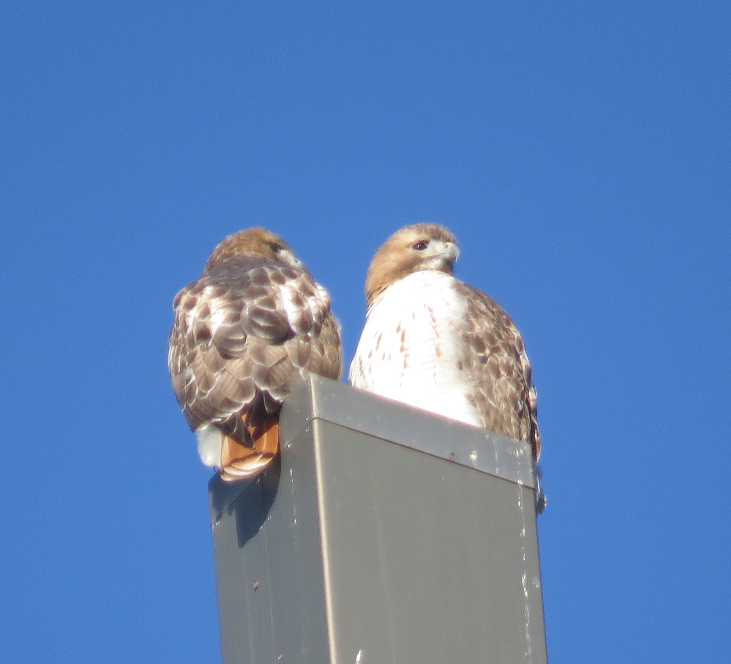 Pair of Red-tails on the cross at Grove Avenue Baptist Church