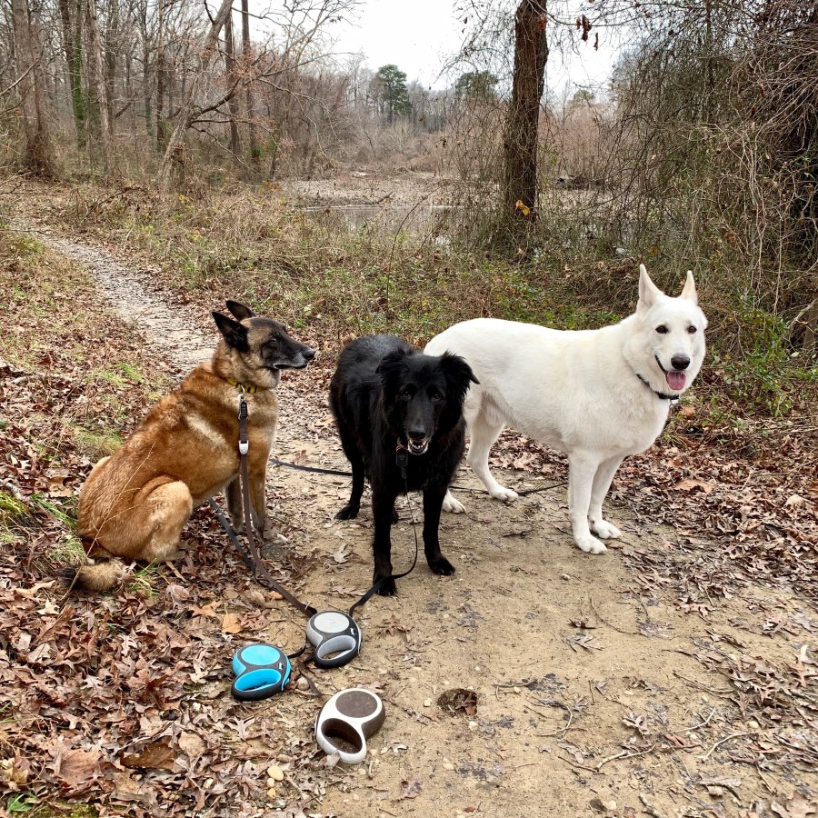 My boys at Bryan Park today. I was standing on their leashes when I photographed that hawk.