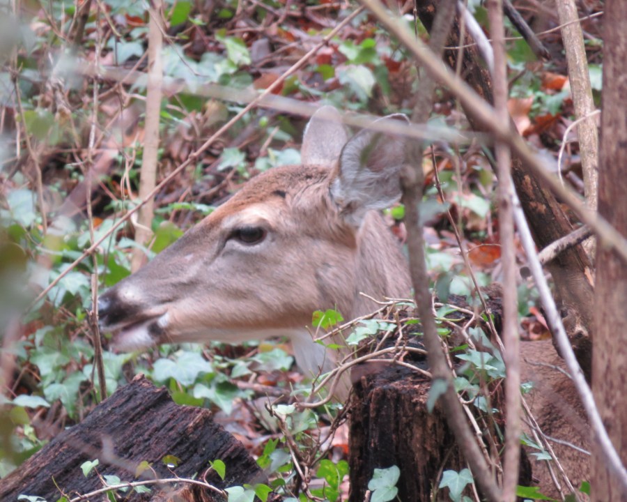 A white tail deer, a “ruminant,” ruminating at Pony Pasture Thursday morning