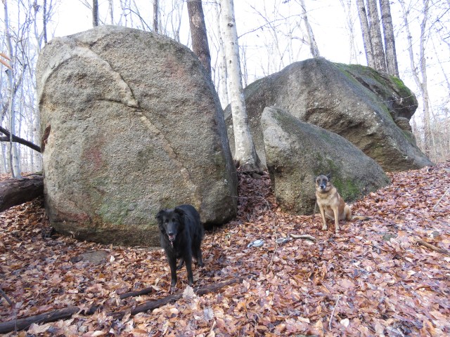 Mackey and Turner and I paid our first visit ever to Larus Park off Huguenot Road in Richmond Thursday. It’s a small, out of the way park but worth a visit – we’ll be back soon. Probably this week. Here’s Mackey and Turner in the park. Big rocks! Fun hiking: