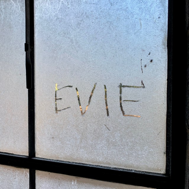 Lest I forget this is still January. I scratched this in the ice on the inside of our garage window Tuesday morning. She planted those bulbs: