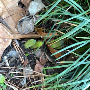 We’ve already got bulbs coming up – and it’s still January. I photographed these three yesterday (January 26). I’ll keep following them here. Possibly it’s wishful thinking on my part, but I sense spring is more imminent than it normally is in late January. A week from today will be the first Sunday in February! It feels like the frogs will be singing any second at Pony Pasture. We’ll see. Maybe one more hard freeze first. But here are three bulbs from our yard:
