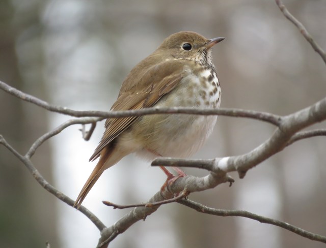 I saw this Hermit Thrush (Catharus guttatus) Friday at Deep Run Park in western Henrico. I am an outgoing person but the avalanche of sports (today is Super Bowl Sunday) and politics (needs no explanation) have left me looking for a quiet place to hide. To get in touch with my inner hermit. I don’t see a million hermit thrushes but it’s always a treat when I do.