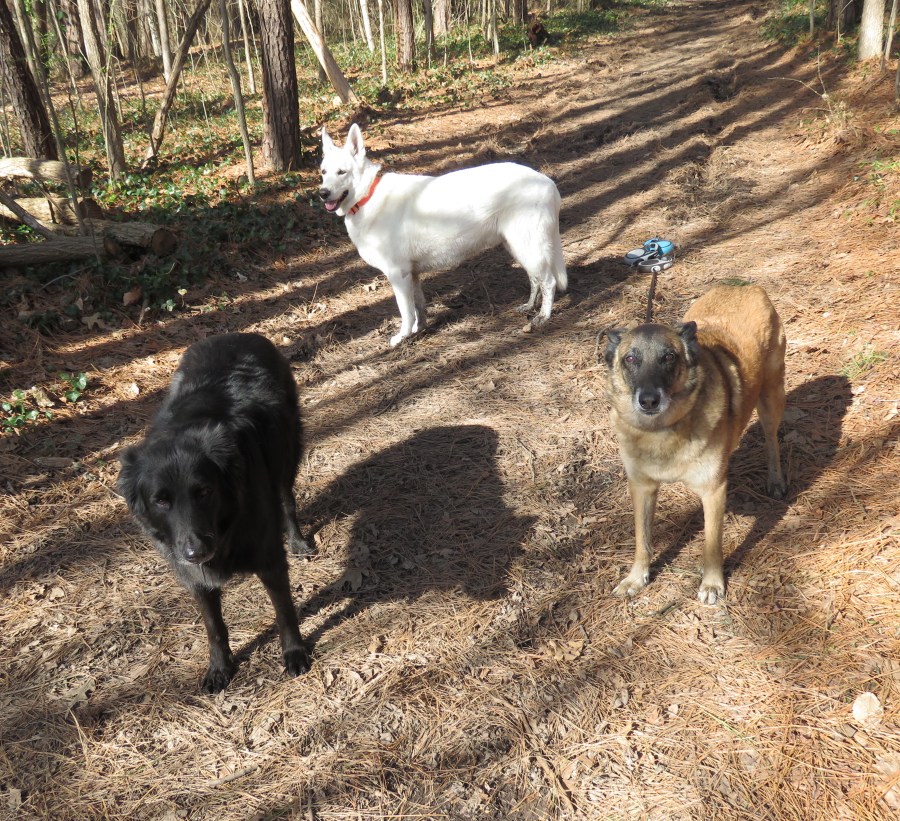 Mackey, Yuki and Turner pause on the trail this morning- they enjoy the nice weather too!