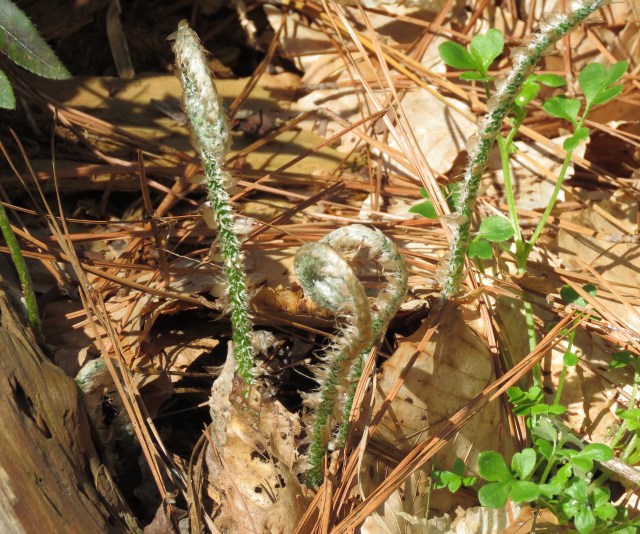 I rushed this shot a little today and I wish I hadn’t. This is a fiddlehead fern and they’re quite graceful; I didn’t capture it. And “fiddlehead” is a stage of fern growth, not a type of fern, and thus is very ephemeral – they’ll be regular old ferns real soon. But it’s a neat image: