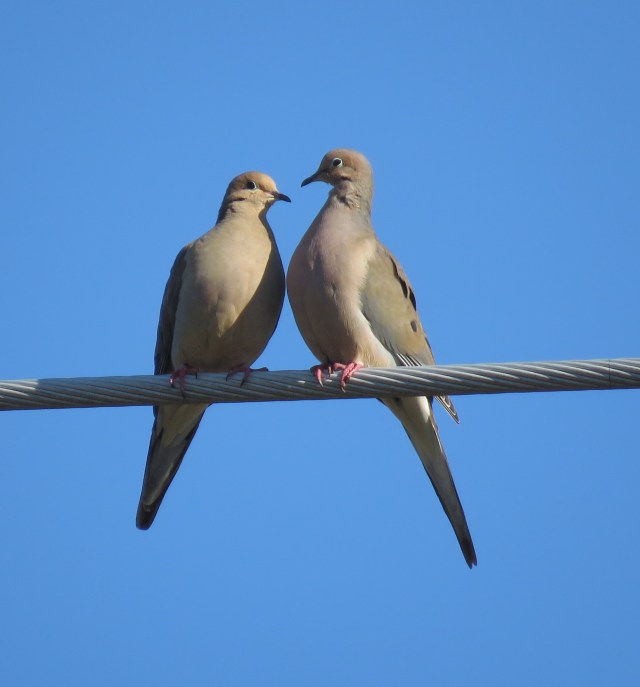 Since we have mourning doves 365 days a year in Virginia, they could make a case for not being ephemeral. I suspect these two will be raising baby doves very soon. This was on the south side of Patterson Avenue in front of the Tuckahoe YMCA Wednesday morning: