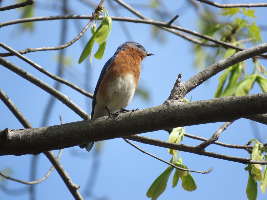 Male bluebird on a maple branch this morning at Pony Pasture