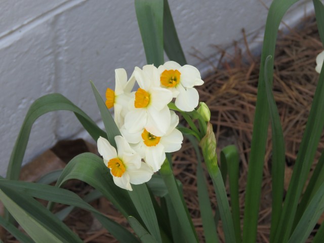 I almost forgot! Ev has flowers blooming everywhere in our yard, including more varieties of daffodils than I even knew existed. Here is a little clump of beauties:
