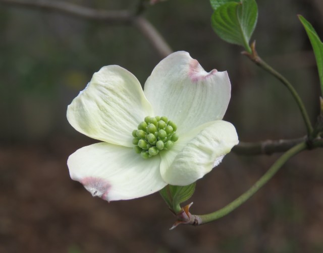 Our front dogwood at home is still blooming nicely, but the time is passing. Always a happy tree for me: