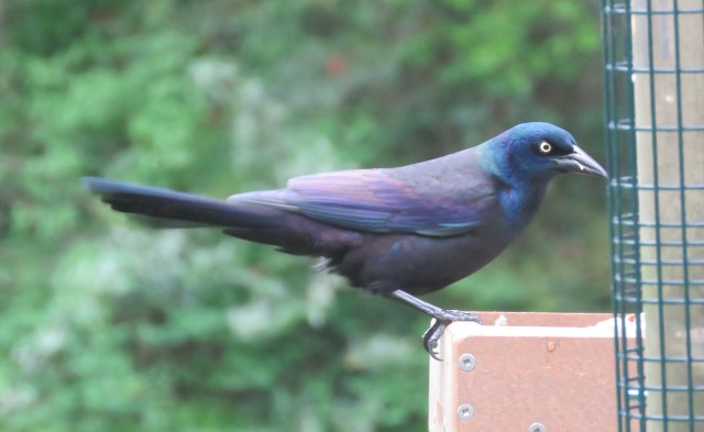 I have a million birds on the feeder this week, and I don’t love feeder images – they don’t take any skill – you just sit there. But a grackle came in this week and it was striking (IMO) so here’s a grackle too. I always like the way their eyes look: