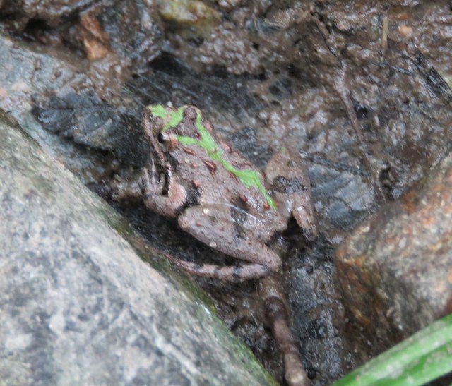 I got another cricket frog yesterday. We took a Saturday walk to avoid today’s forecast rain. Cricket frogs are really hard to see and I apologize for the poor quality (light) in this image. But I’m always delighted to see one: