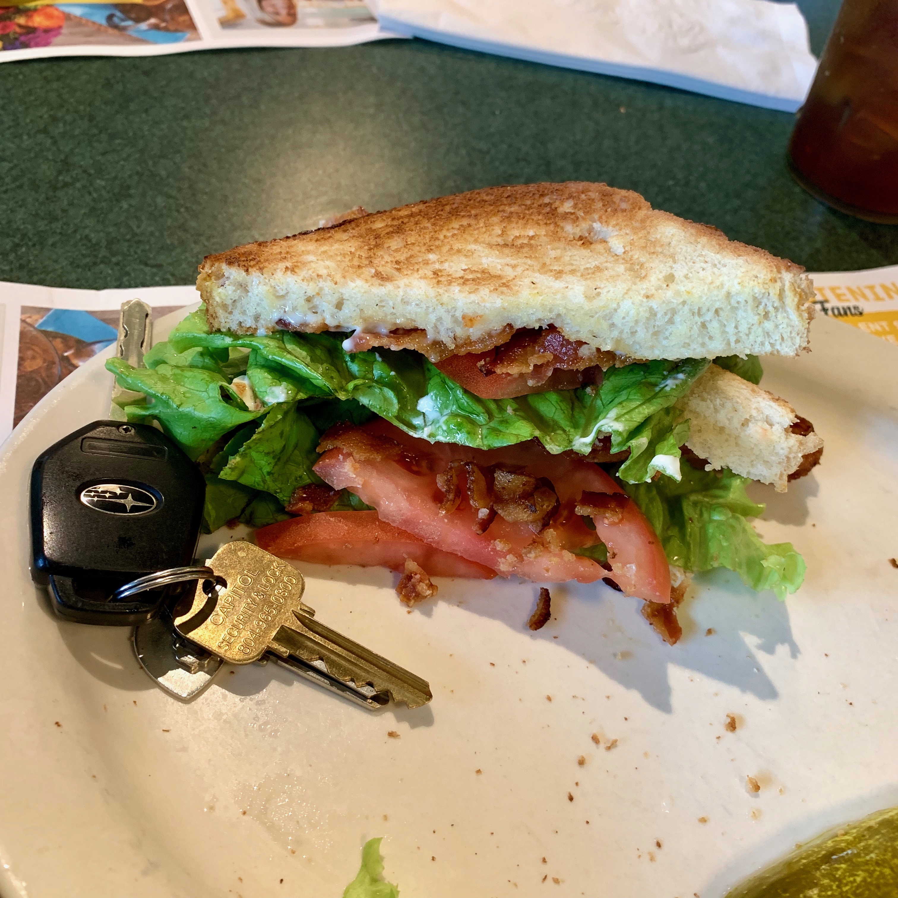 Half of the aforementioned 830 calories – with keys, for scale. Sorry about the tomatoes Sheila!