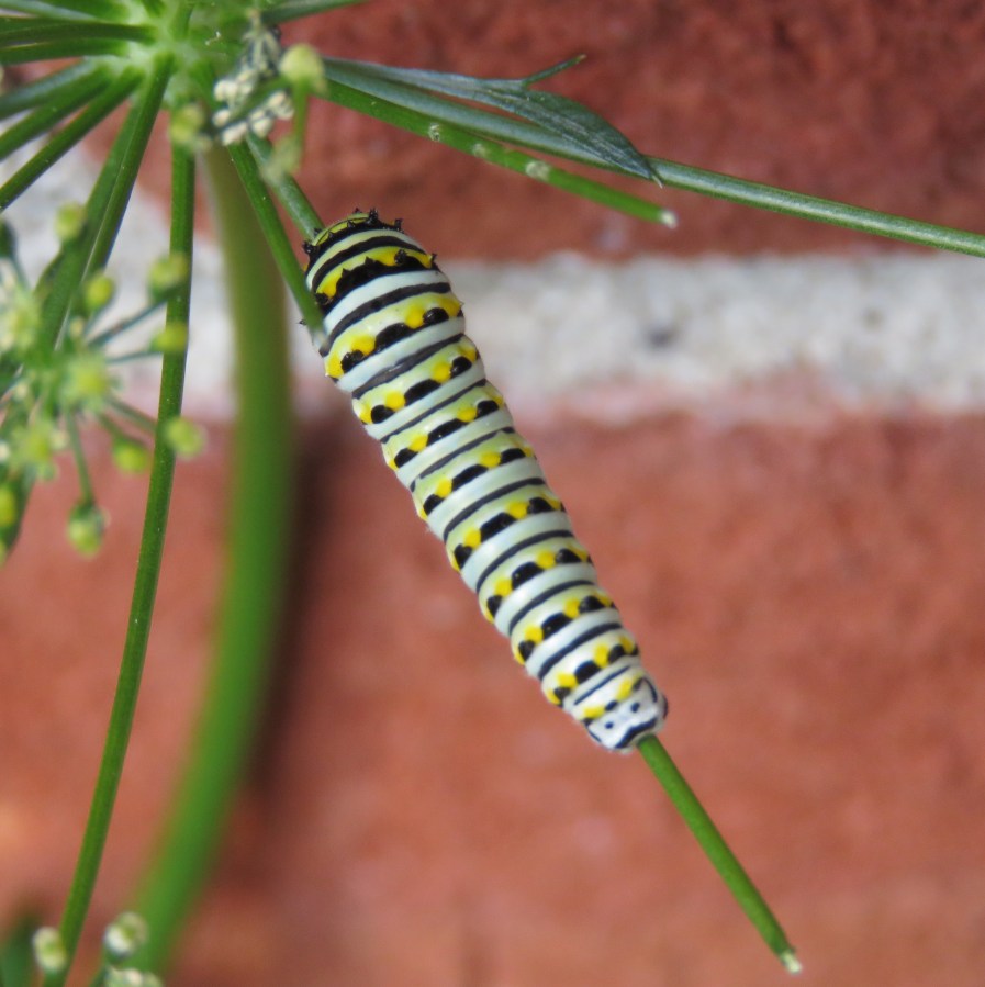 Eastern Black Swallowtail caterpillar gobbling fresh parsley (last year’s model)