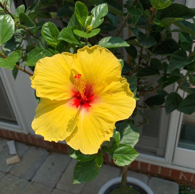 Along with all the other treasures Evelyn’s brought to life in our yard, this week she added this glowing hibiscus. Butterflies and hummingbirds are both attracted to these enormous beauties; we’ll see what follows them into our yard: