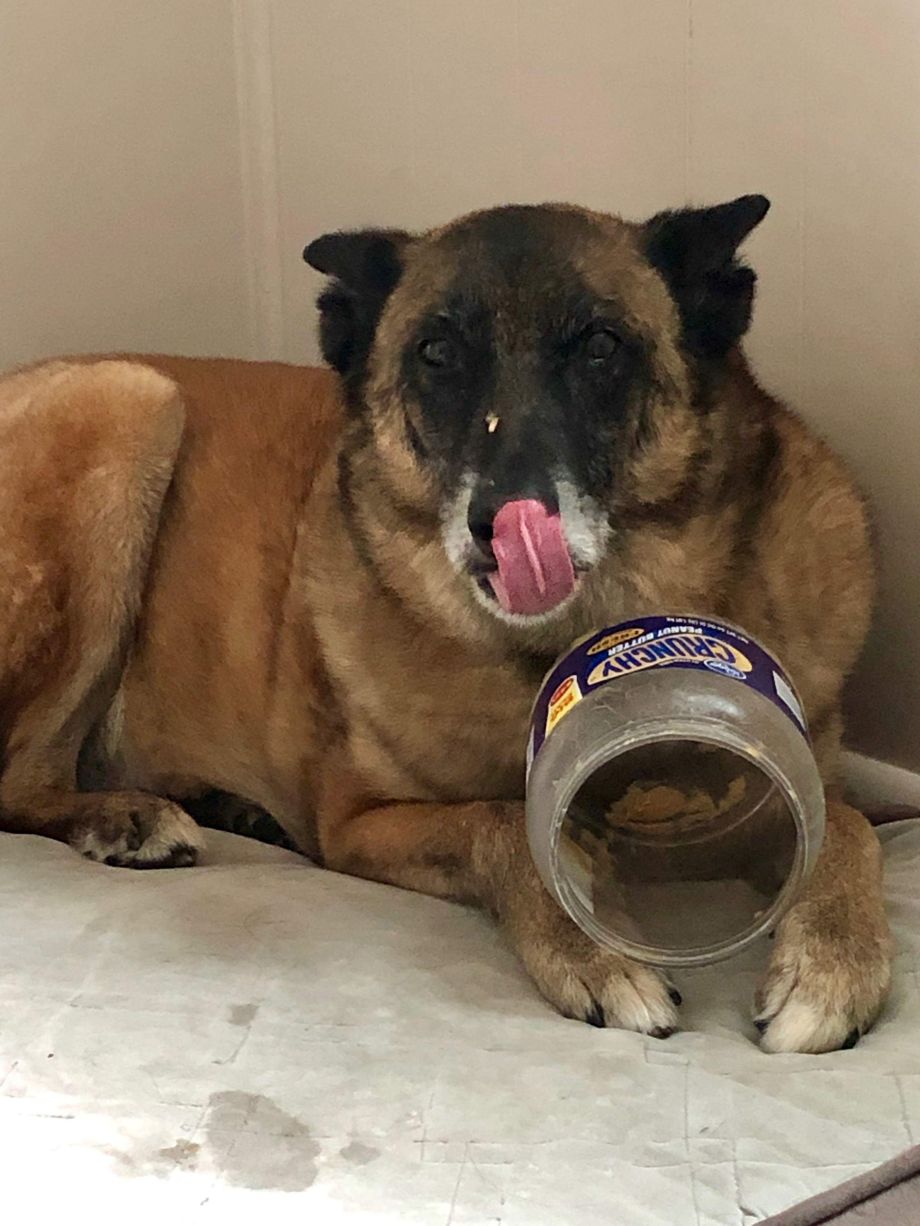 I gave Turner the empty PB jar to “lick the bowl.” Ev snapped this picture: