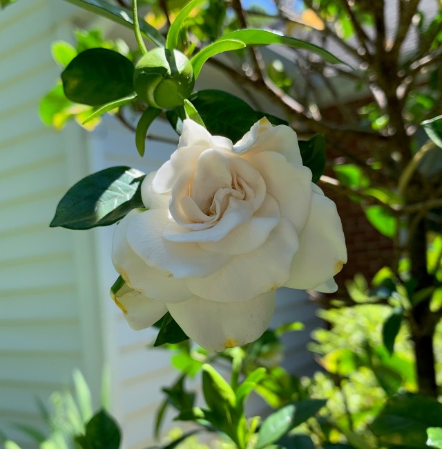 Our gardenia continues to perfume our home. I’m not sure if this is the one Ev put on the kitchen windowsill this week or that was another one; they’re really rolling: