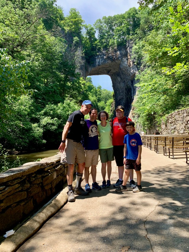 My old friend Ethan, world renowned snake photographer and his family were in Roanoke this week visiting their family. They invited me for a picnic and hike at Natural Bridge State Park in Natural Bridge, VA. I’ve driven past it on Interstate 81 since my sister started at Virginia Tech in 1981 (thirty-eight years ago!) and never visited! I still drive down there to visit my brother in Blacksburg so I’m glad Ethan and has family invited me to spend some time there. And they brought pimento cheese sandwiches! And fresh vegetables (the tomatoes were my favorite) from the farm share Ethan’s grandparents use. Those tomatoes were A+. But they also had those excellent little cucumbers. We ate outdoors on picnic tables with tablecloths – it was so nice – in the shade and even had lemonade and iced tea! It fueled us up for a great hike down to see the Natural Bridge and the Monacan Indian Living History Exhibit a few minutes further down the trail.