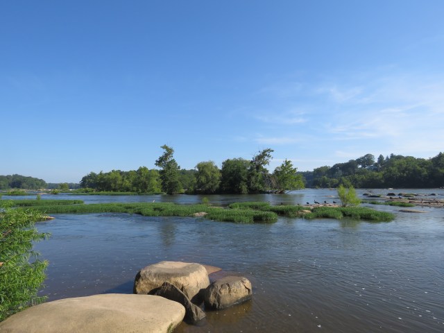 Oops! Almost left a picture off. The river is getting its colorful summer look, blue water reflecting a blue sky with bright green plants and a bit of muddy granite to add balance: