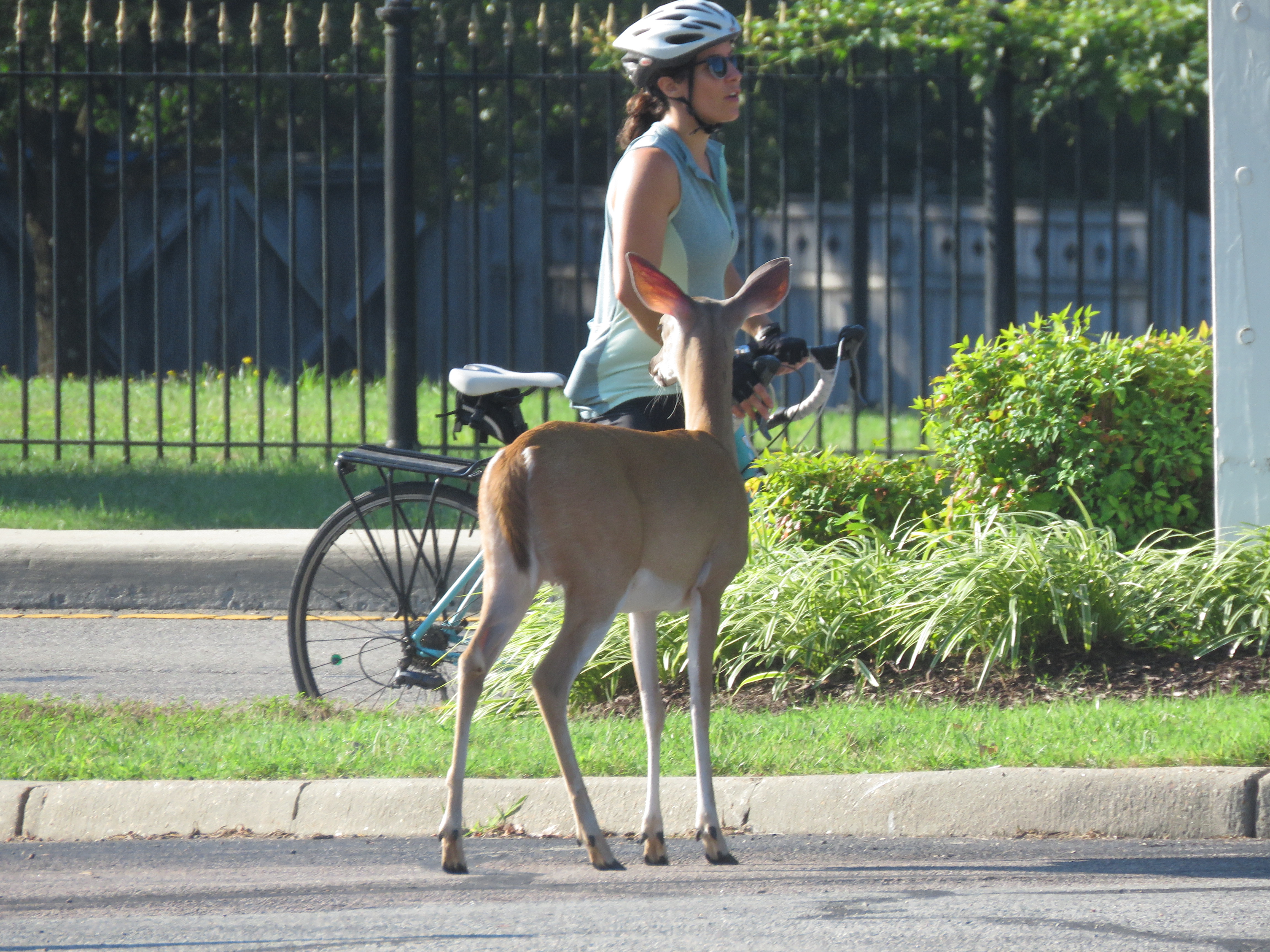 Probably the biker was happier than the deer. But this was not traumatic for the deer: