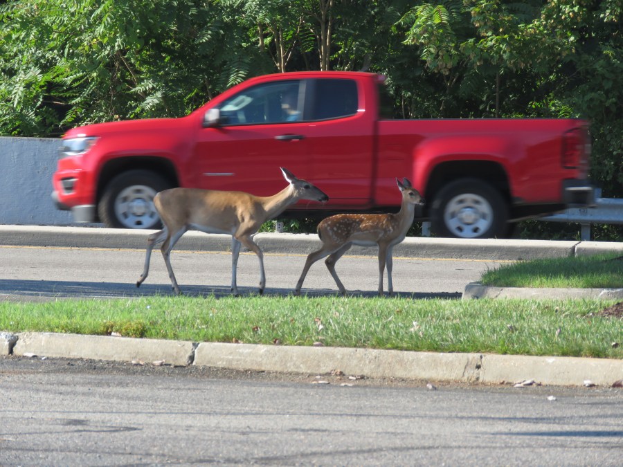 Parent and offspring about to have a road crossing safety lesson. It went well. I watched the whole thing.