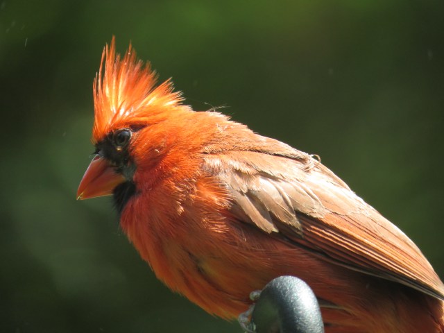 I got one other picture the same day as that goldfinch picture that came out pretty well. It’s not framed just right but it captures (IMO) the essence of a male Northern Cardinal: