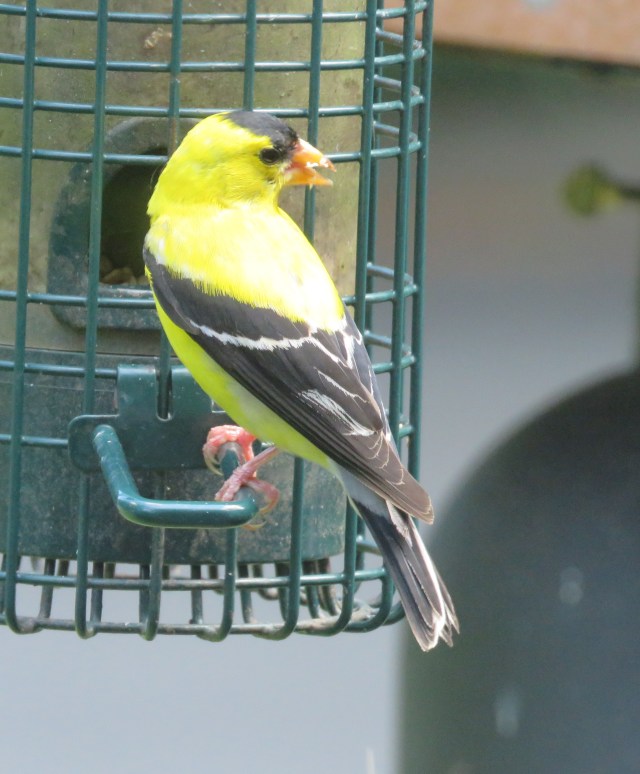 Today I had a bluebird, a cardinal and a goldfinch on my feeder at the same time – primary colors! I didn’t get any brilliant pictures (I rarely, rarely do – I just take a lot) but here’s a goldfinch. Male goldfinches are always cheerful (IMO) to look at. If goldfinches were invasive species, I wonder if people would be so judgmental. It’s difficult for a starling to look cute. It’s difficult for a goldfinch not to: