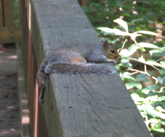 I saw this squirrel stretched out trying to beat the heat Monday at Deep Run: