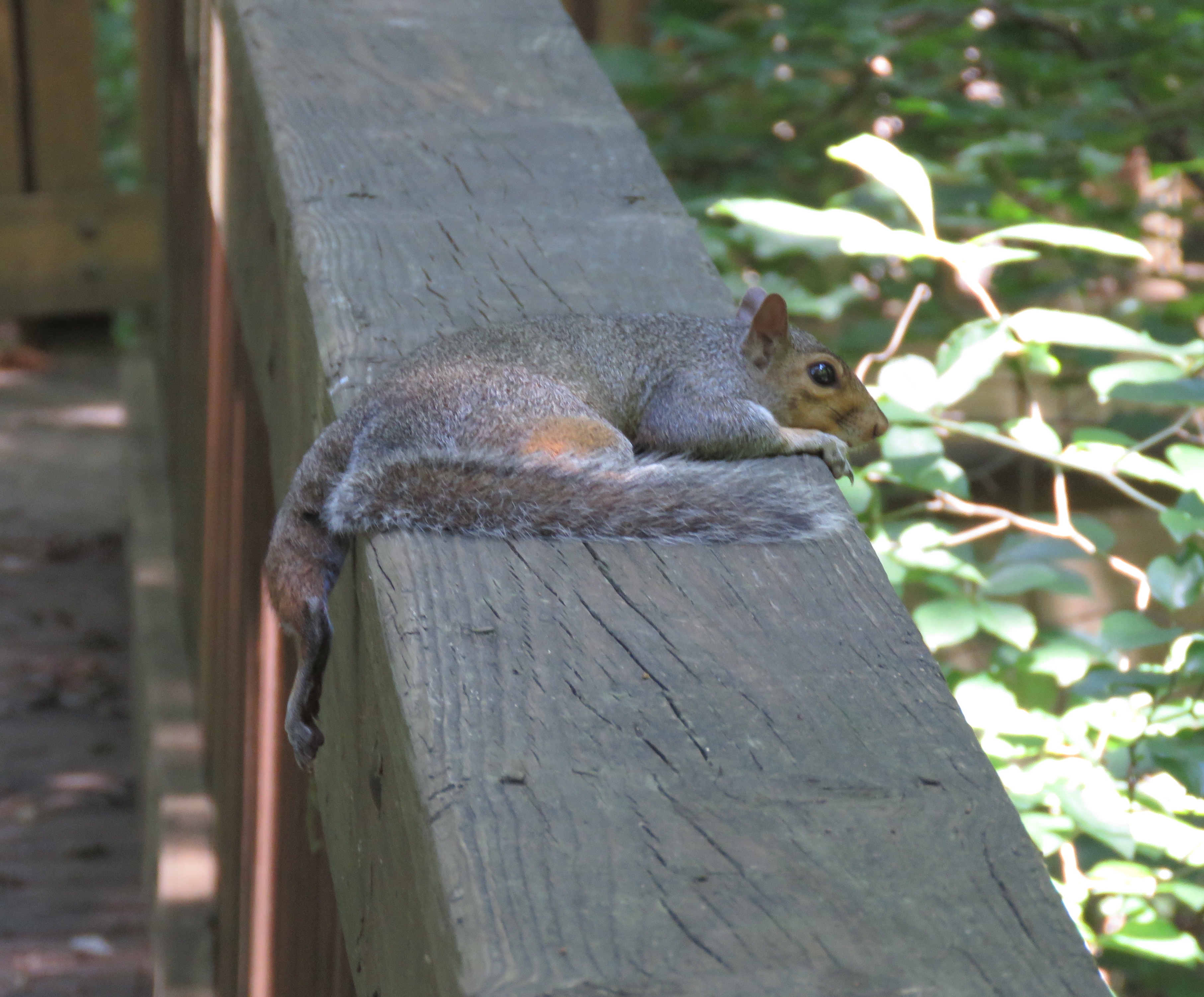 This is how squirrels cool off when it’s hot. It jumped up and ran off a moment later.