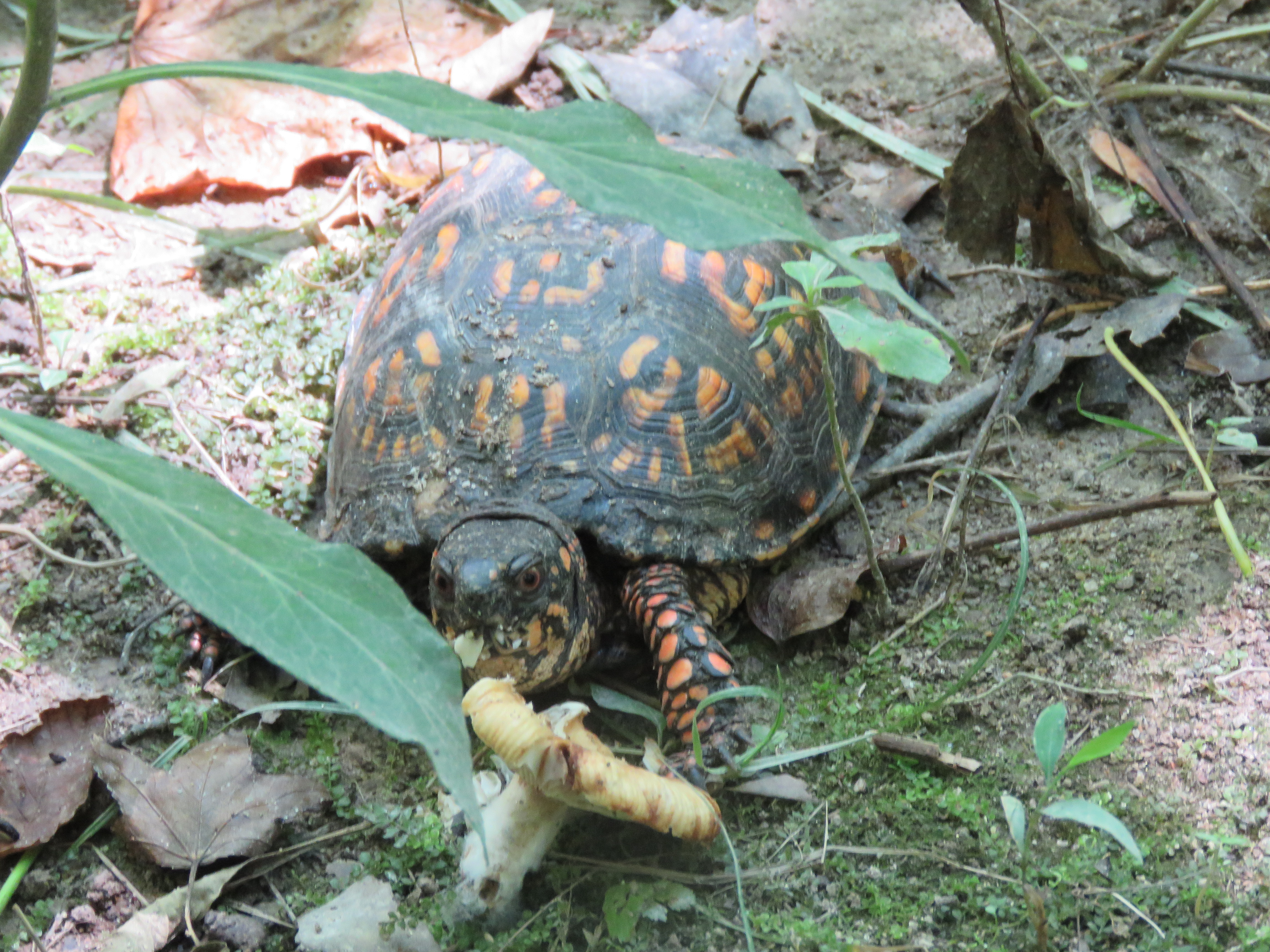 Box turtle gobbling up a mushroom
