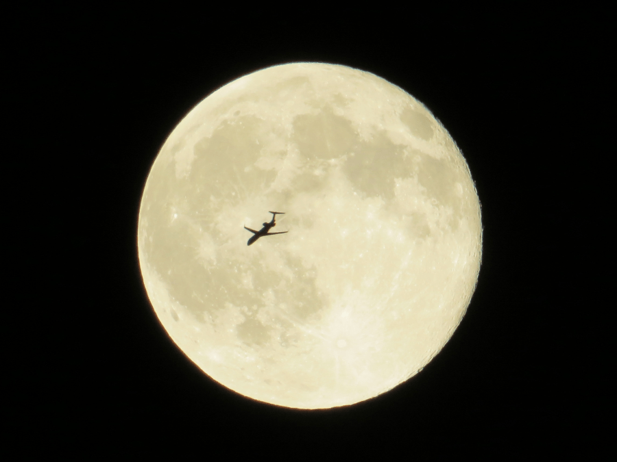 Plane in front of a “Blue moon” – August, 2015