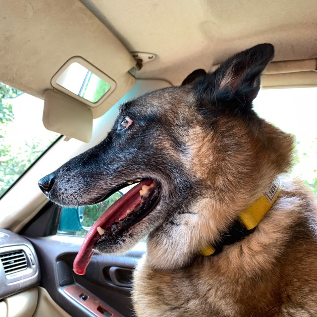 I was stopped at a light on the way to the river Tuesday when I turned right and took this picture of Turner (dog is my copilot) in the passenger seat. Turner sleeps, although Evelyn is certain sometimes he sleeps with his eyes open. But Turner for the most part goes through life with this expression on his face:
