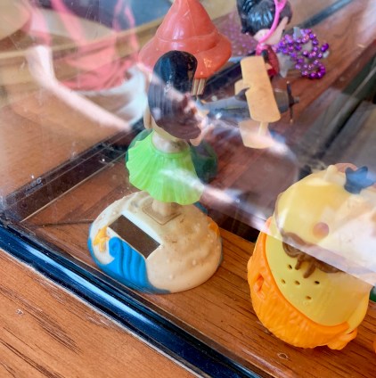 At Mom’s house when she died – and probably before that for a really long time – Mom had some crazy little solar powered plastic thing like that in her bedroom window, a chicken or a pig or a duck or something – one of you might remember. And when she died, I have this recollection of that thing, I always, always, always think of it. Every single Wednesday morning when I’m in there with my buddy and that little plastic person is doing her hula dance, I always think of it.